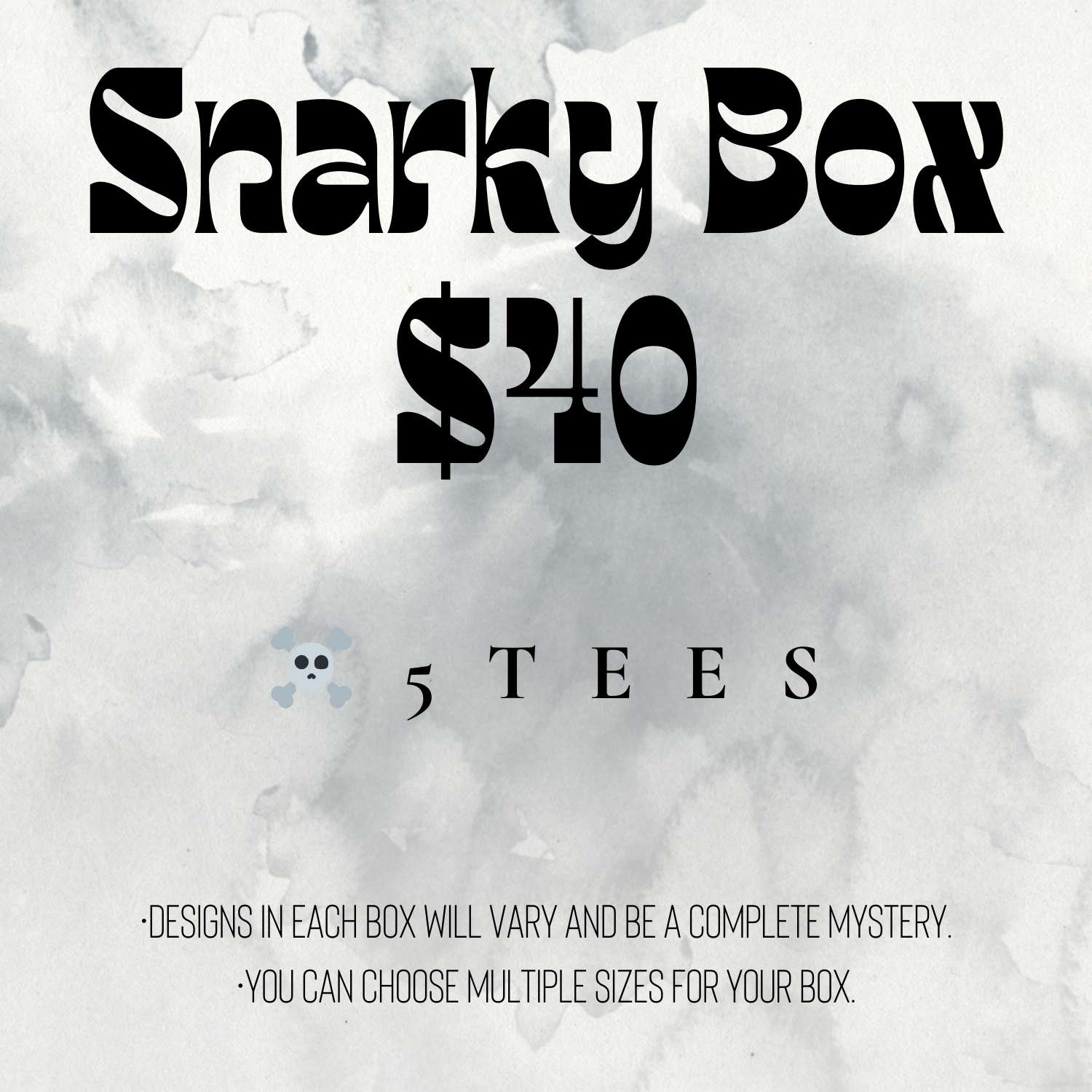 Designs of tees will vary between boxes but will all be snarky themed.